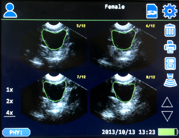 Application: Scanner de la vessie est utilisée pour visualiser, suivre et mesurer de manière non invasive le volume d'urine dans la vessie, afin de déterminer si d'uriner est nécessaire et le débit urinaire et pour éviter une insertion inappropriée du cathéter dans la vessie. Scanner de la vessie est largement utilisé en urologie, la réadaptation, la chirurgie, salle d'opération et les soins de santé à domicile. Avantages de la numérisation de la vessie • Calcule le volume de la vessie et le résidu postmictionnel • Évite les sondages non nécessaires et l'inconfort du patient • Diminue les risques d’infection des voies urinaires • Surveiller la vessie non invasif pour éviter la rétention urinaire • Surveiller la récupération post-opératoire • Réduit les coûts hospitaliers (jetables) • Favorise l'efficacité du personnel et nécessite peu de formation.